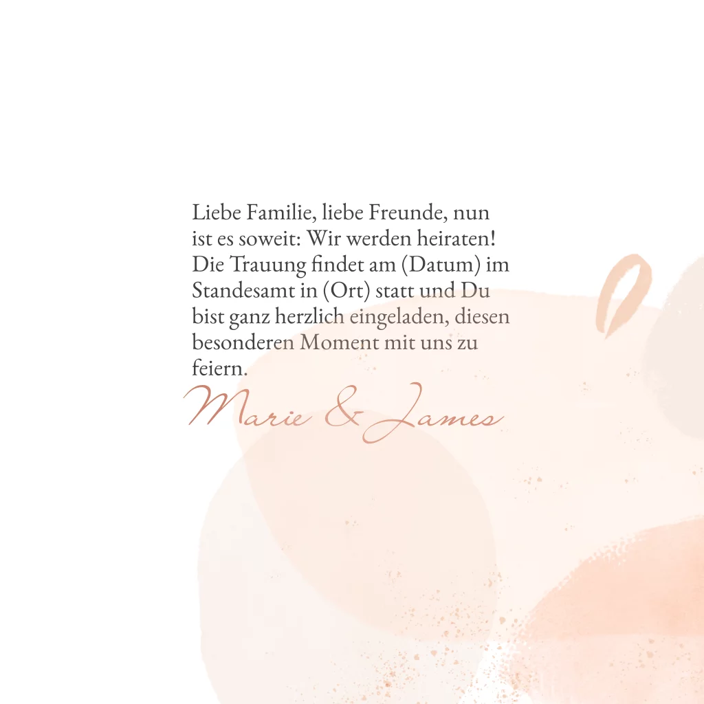 Schlichte Einladungskarte zur Hochzeit mit Aquarell in Rosa und Kupfer