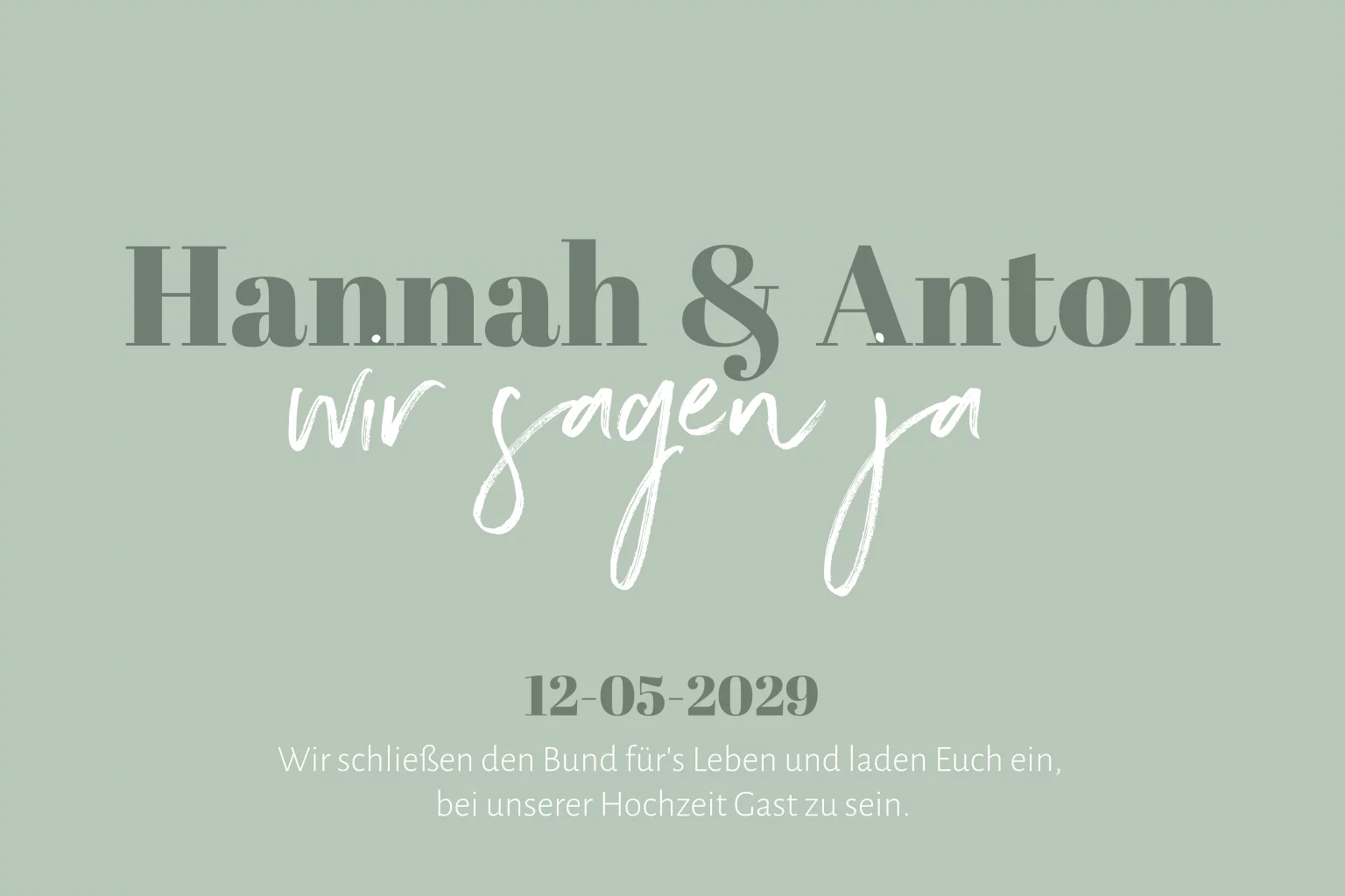 Schlichte Hochzeitseinladung in grün mit weißen Akzenten