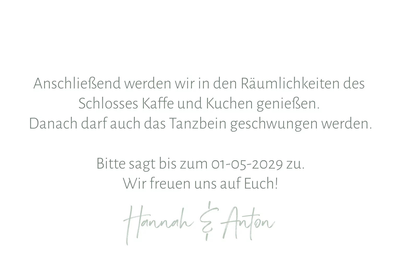 Einfache Einladung zur Hochzeit in Salbeigrün. Die Klappkarte ist im Innenteil weiß gestaltet.