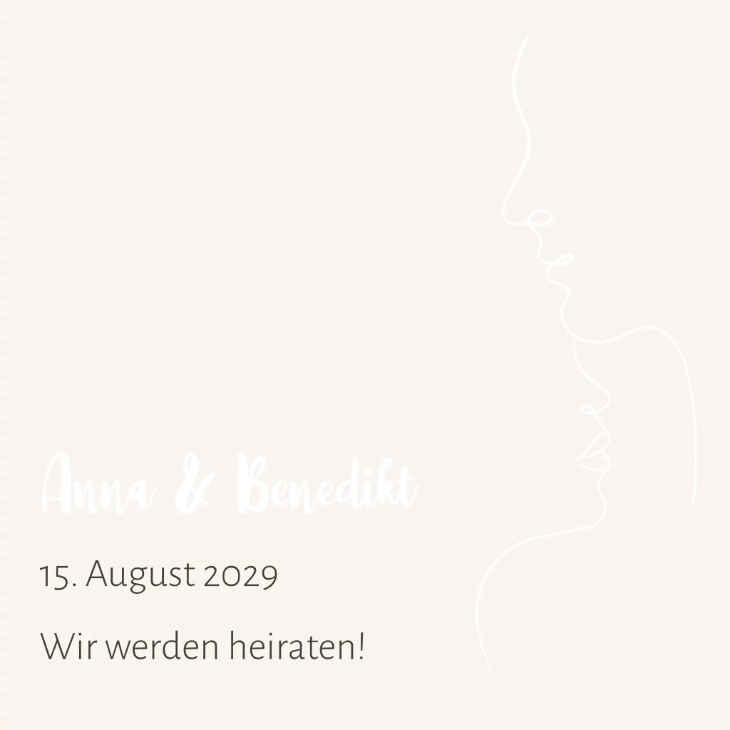 Schlichte Hochzeitseinladung mit Line Art Pärchen aus schwarzer Folie