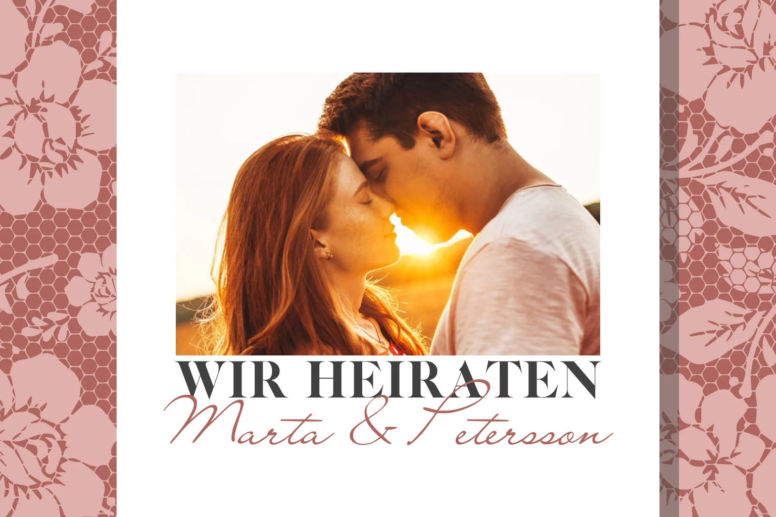 Hochzeitskarte mit Spitze und Rosen in rot mit Foto
