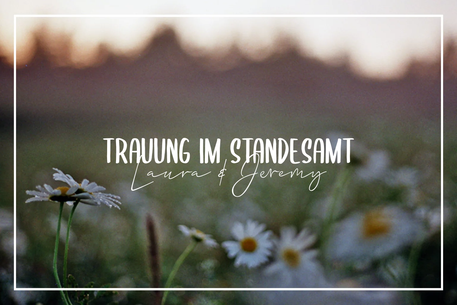 Einladung für das Standesamt mit Blumenwiese Bild und weißem Rahmen