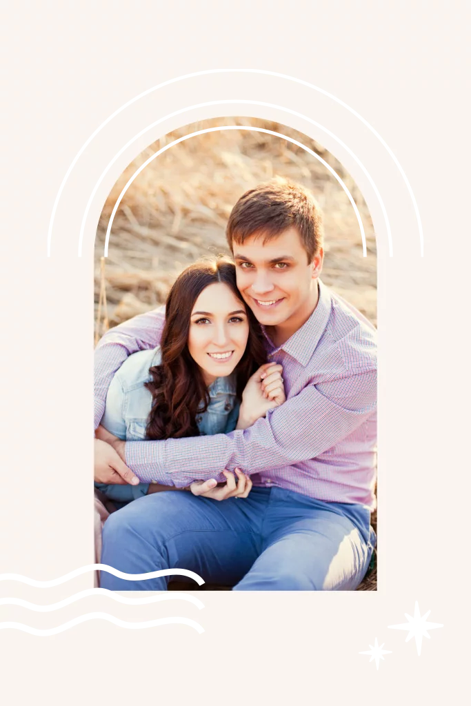 Veredelte Boho Hochzeitseinladung in beige mit Sterne + Formen in gold