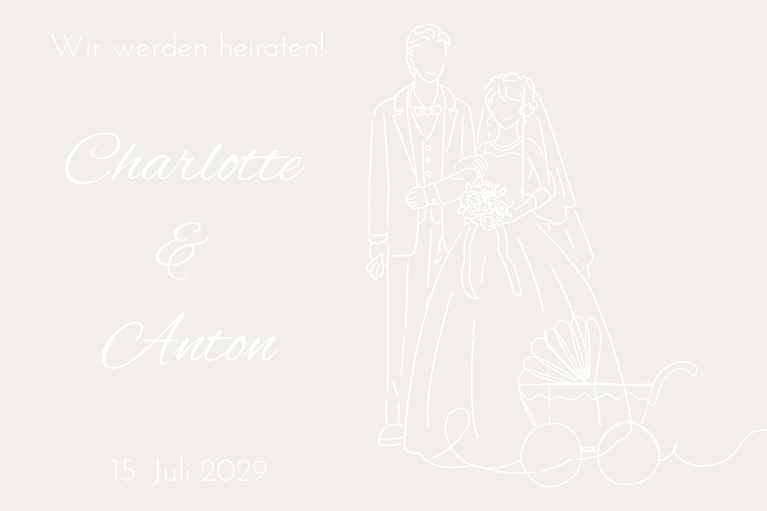 Einladung zur Hochzeit in beige mit Brautpaar und Roségold Veredelung