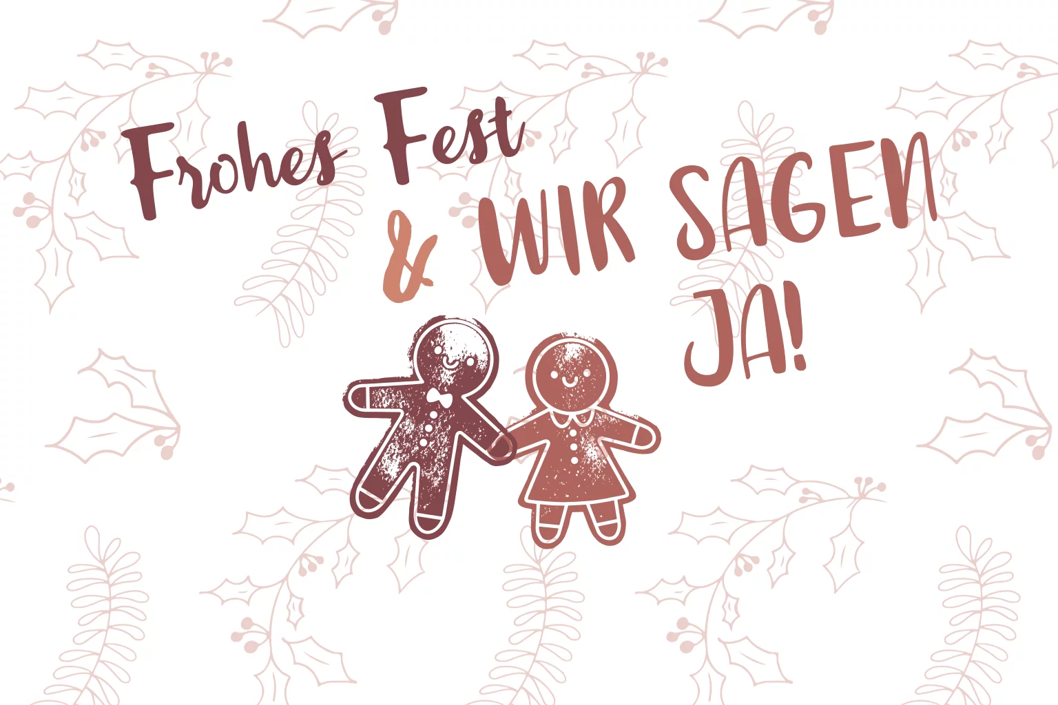 Weihnachtliche Einladungskarte zur Hochzeit mit zarten roten Zweigen. Die weiße Klappkarte mit Falz oben hat auf der Vorderseite ein Lebkuchenpaar.