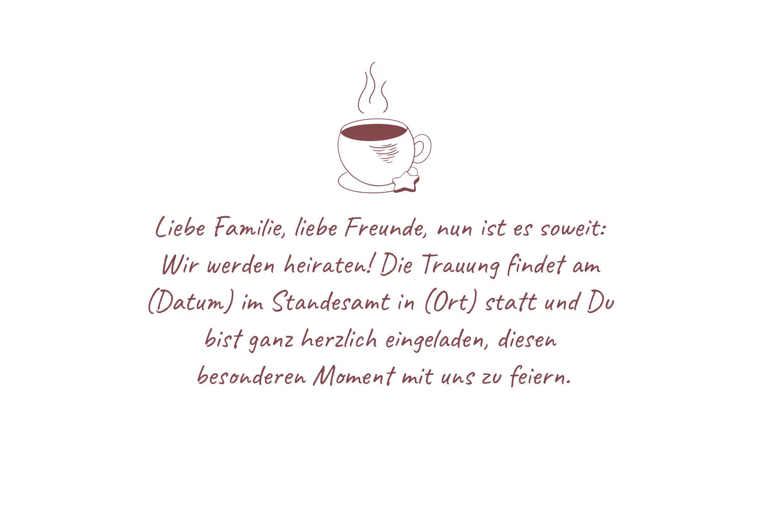 Weiße Hochzeitseinladung mit roten zarten Zweigen und Lebkuchenfiguren