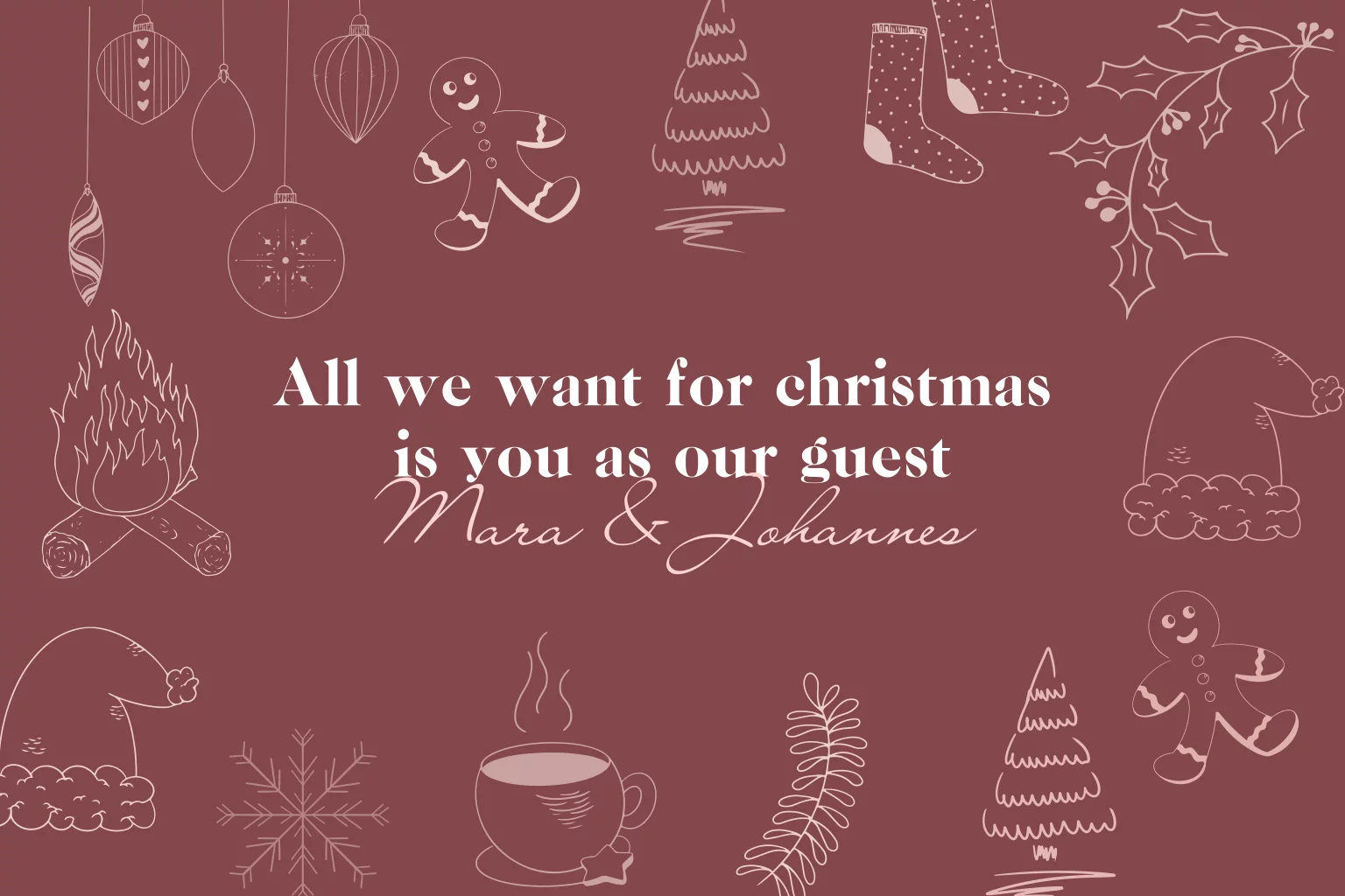 Rote weihnachtliche Einladung zur Hochzeit mit typischen XMAS Icons