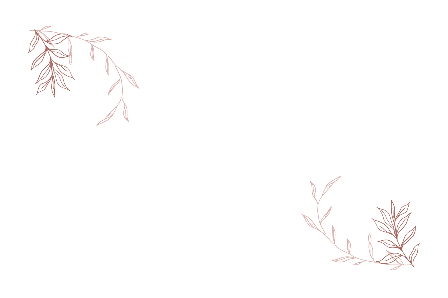 Weiße Einladungskarte zur Hochzeit mit zartem Rahmen und &-Zeichen in roségold. Die veredelte Postkarte mit Line Art Zweigen bietet auf der Rückseite Platz für Foto und Text.