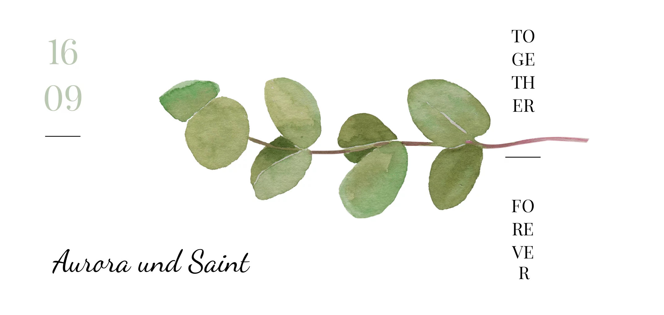 Eine frühlingshafte Einladungskarte zur Hochzeit mit Eukalyptus Zweig in einem samten Grünton. Die weiße Karte im Panoramaformat ist trotz ihres schlichten Designs ein absoluter Hingucker.