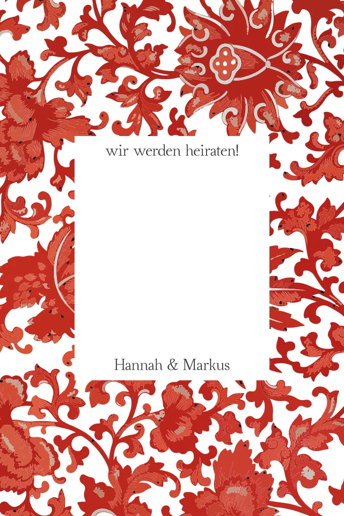 Herbstliche Hochzeitseinladung mit rotem floralen Muster und Goldfolie