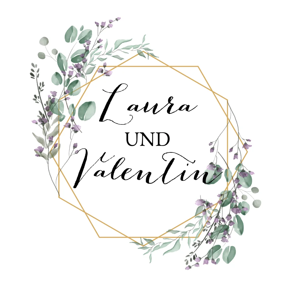 Einladungskarte zur Hochzeit mit Zweigen und filigranem Goldrahmen