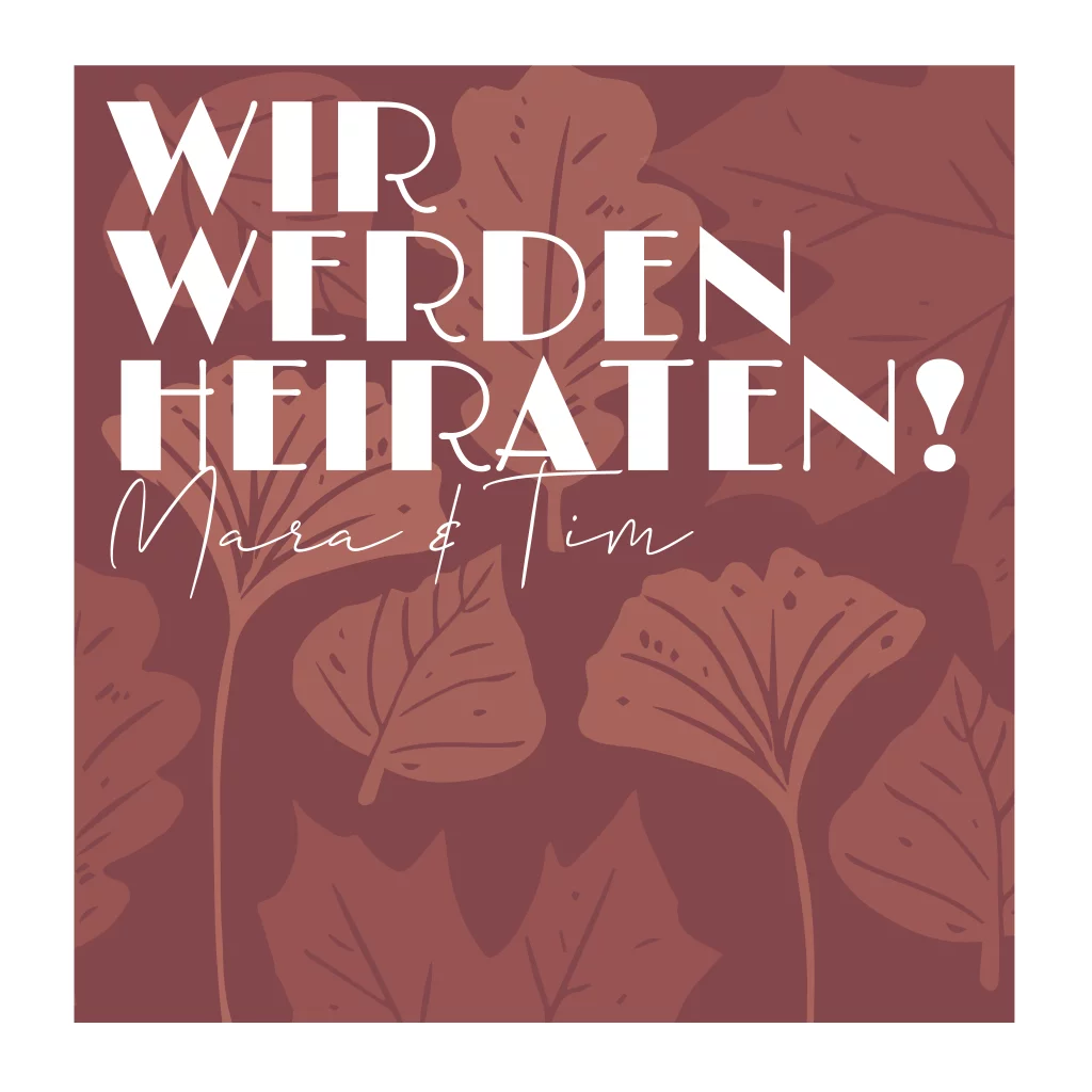 Die quadratische Klappkarte als Einladung zur Hochzeit ist perfekt für eine Trauung im Herbst. Die unterschiedlichen Herbstblätter in rot ziehen sich durch das gesamte Kartendesign. Zudem bietet die Karte ausreichend Platz für Fotos und Text.