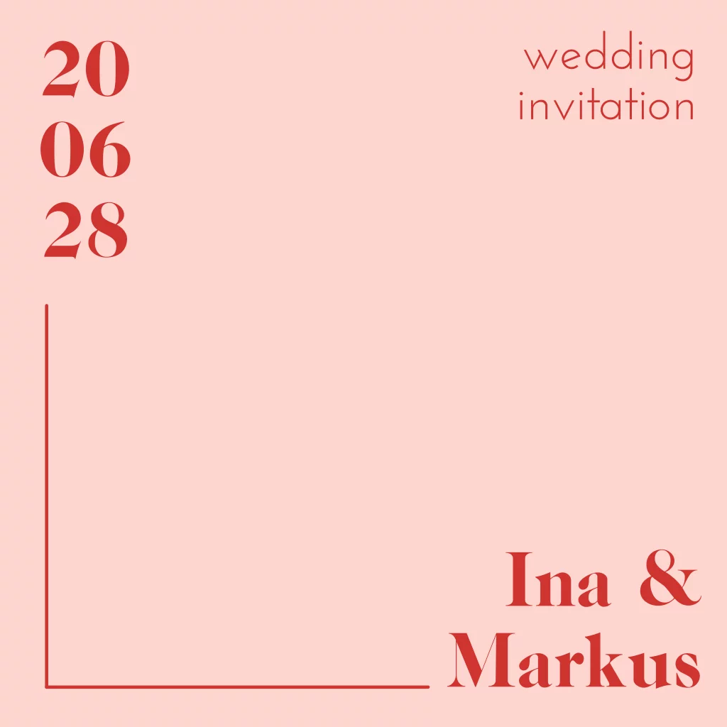Moderne und einzigartige rosa-rote Einladungskarte zur Hochzeit im Typografie Stil im quadratischen Format.