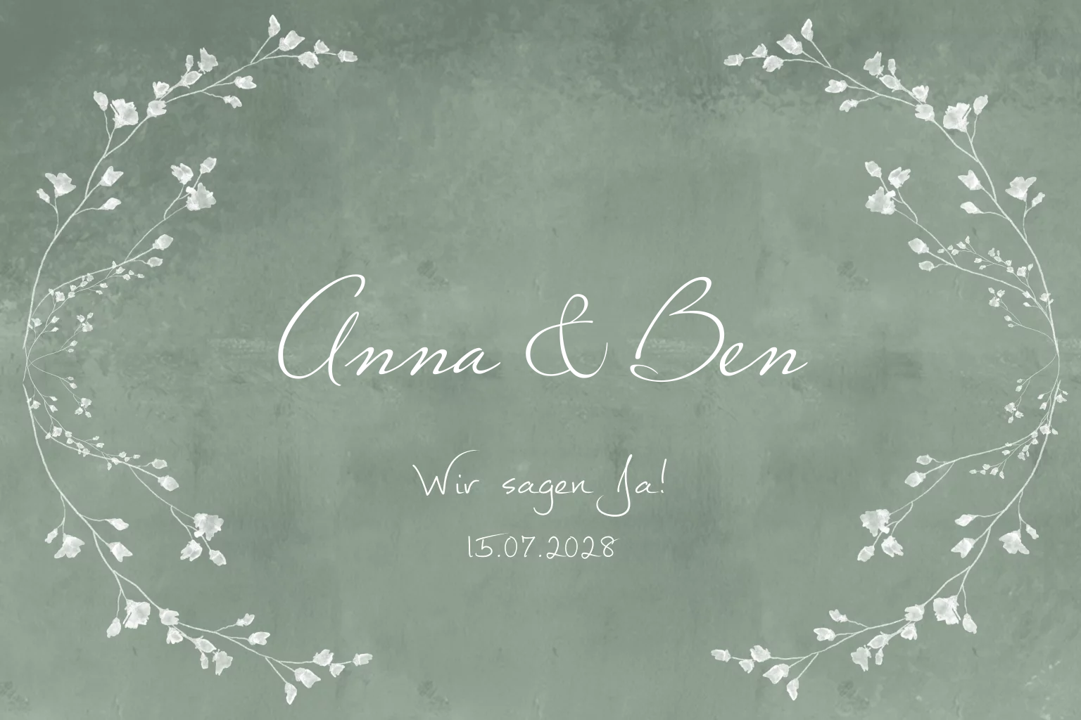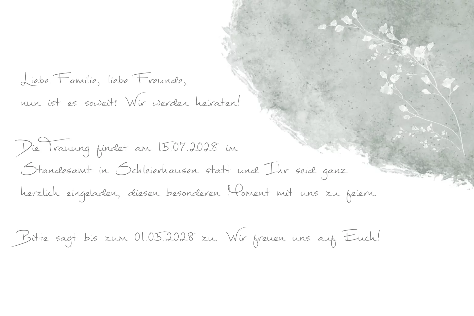 Rustikale Einladung in grün mit feinen Blumen und Goldfolierung