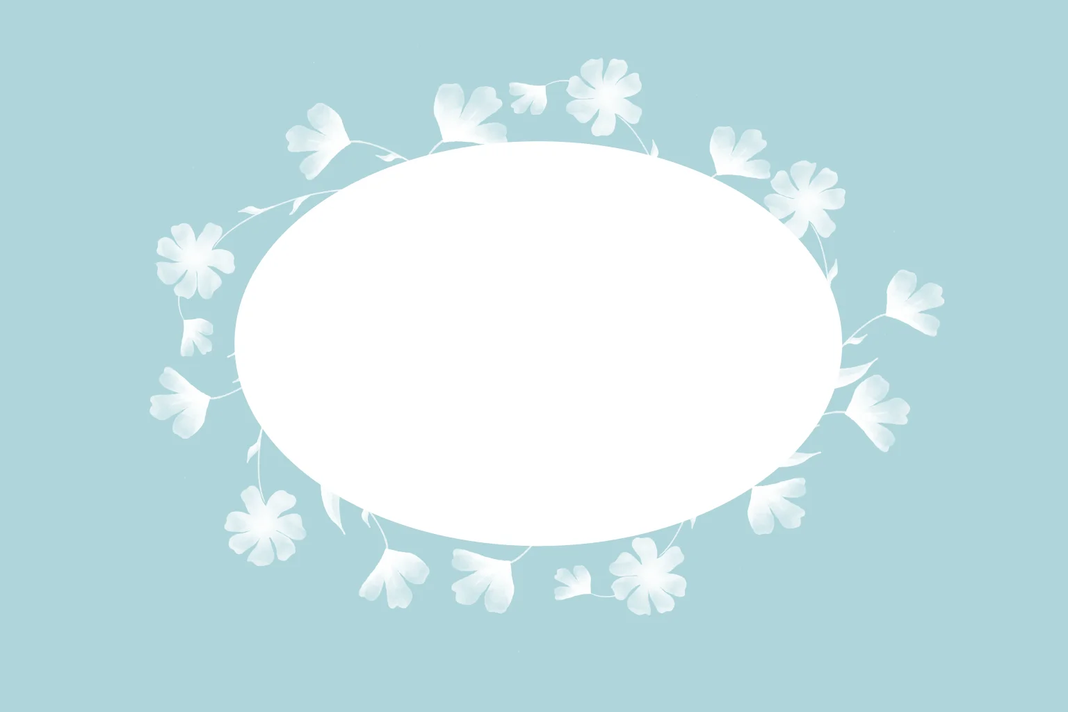 Verspielte Einladungskarte in Hellblau mit Blümchen