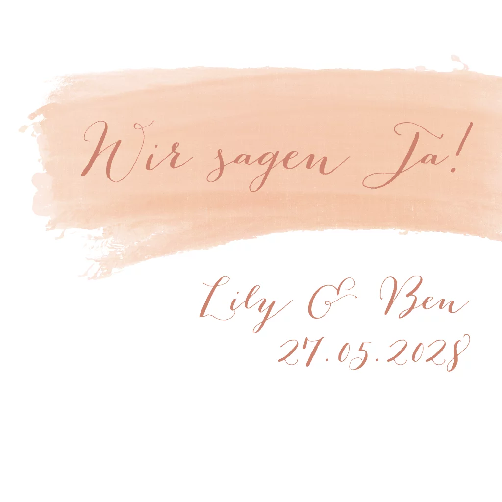 Nicht nur für Maler: Unsere verspielte weiße Hochzeitskarte mit rosa Pinselstrich im quadratischen Format.