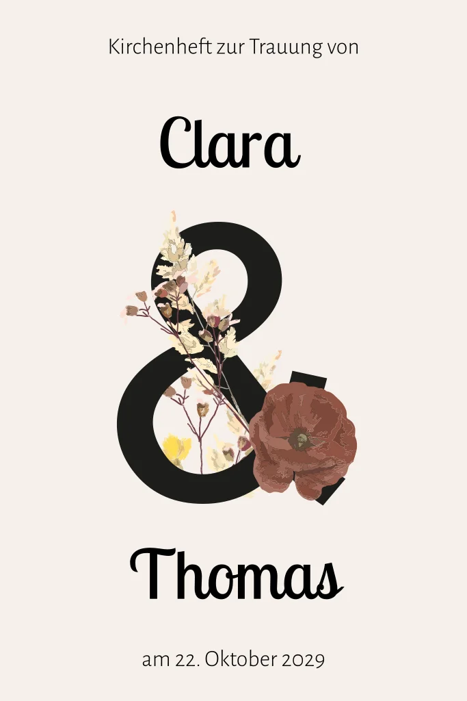 Boho Kirchenheft zur Hochzeit in beige mit schwarzem Und-Zeichen