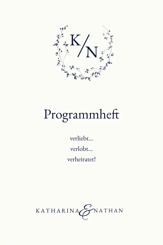 Edles Programmheft für die Trauung mit zarten Blumen und feinen Details. Das helle Klappheft kann nach belieben in ein Kirchenheft umgewandelt werden.