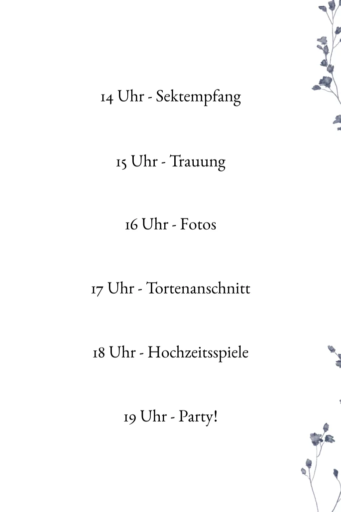 Schlichtes edles Hochzeitsprogramm in hell mit zarten Blumen