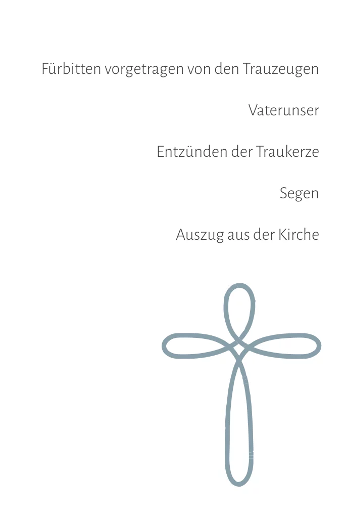 Veredeltes Kirchenheft zur Hochzeit in blau mit modernem Kreuz