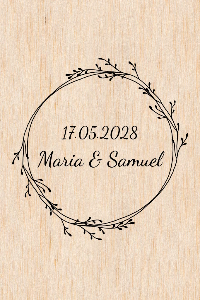 Natürliches einfaches Kirchenheft mit Line Art Kranz in Echtholz.
