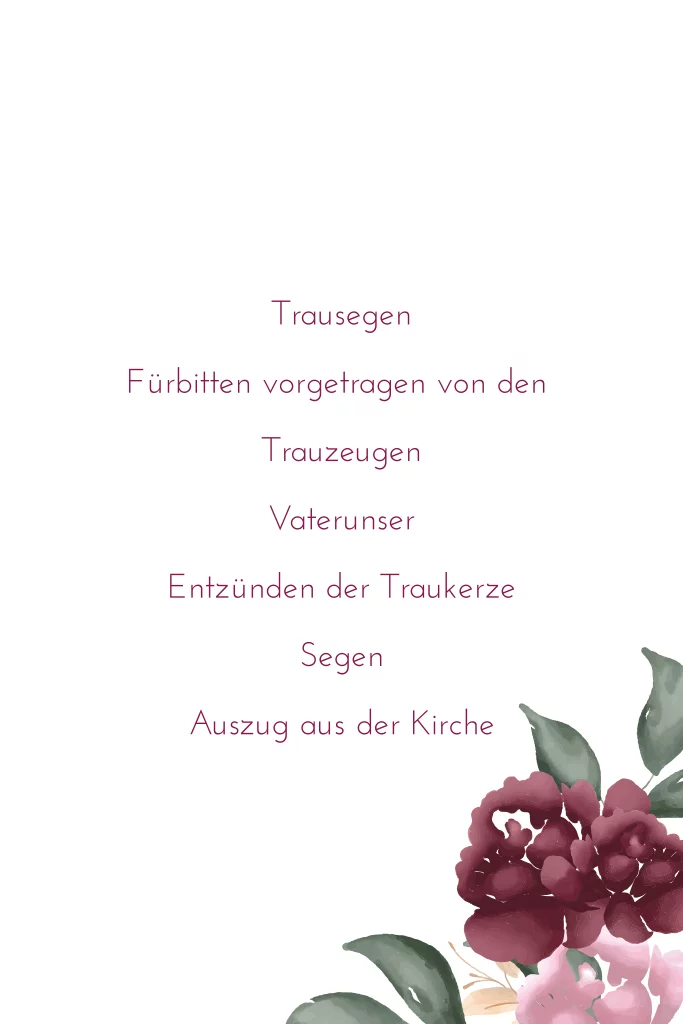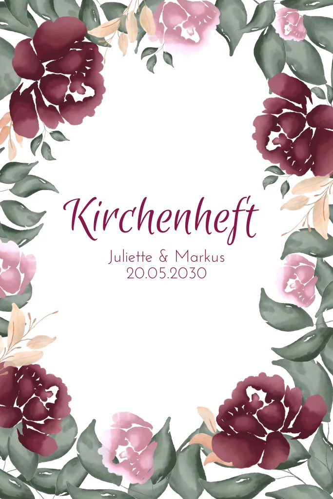 Romantisches Kirchenheft mit Blumenrahmung. Die weiße Klappkarte bietet ausreichend Platz für Euren Text.