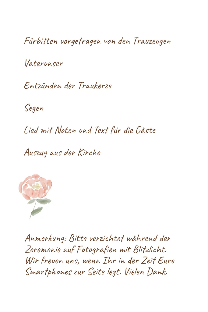 Klassisches Kirchenheft zur Hochzeit mit Rosen und Kreuz in beige