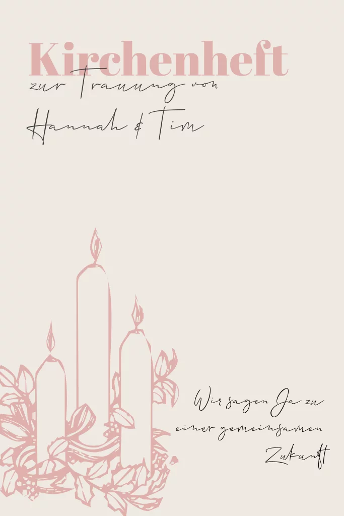 Kirchenheft zur Hochzeit in beige im zarten Design mit rosa Kerzen