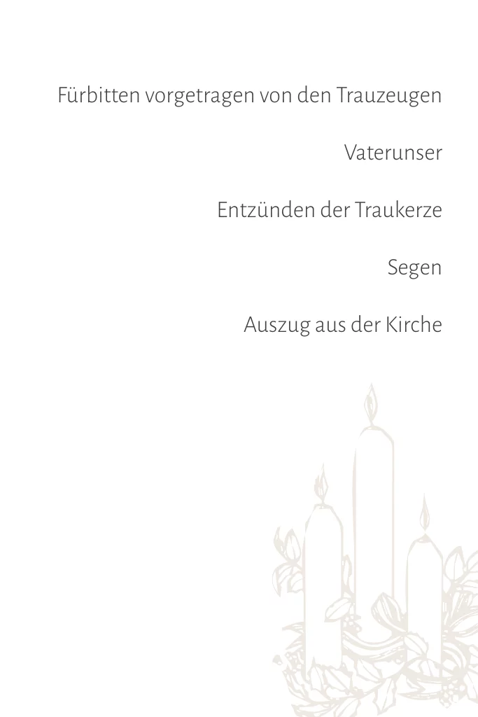 Süßes Kirchenprogramm zur Hochzeit mit Kerzen in rosa. Die schlichte Klappkarte in beige bietet viel Platz für den Ablauf Eurer kirchlichen Trauung.