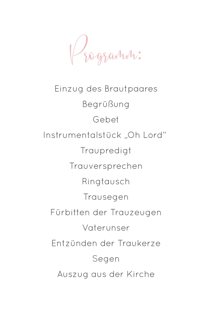 Weißes Kirchenheft zur kirchlichen Trauung mit verliebten Pärchen und Fahrrad in rosa. Dieses Kirchenheft ist ein Unikat und kann von Euch nach Euren Wünschen angepasst werden. Das Design gibt es auch als Hochzeitskarte und weitere Papeterieprodukte.