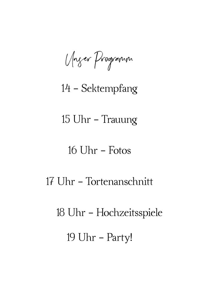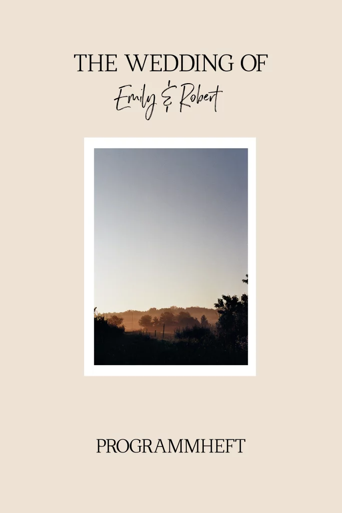 Schlichtes Hochzeitsprogramm in beige und weiß mit Foto