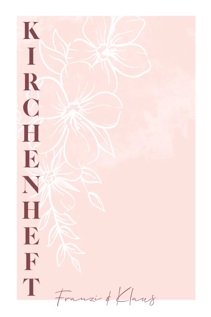 Rosa Kirchenheft als Klappkarte mit Line Art Blumen in weiß