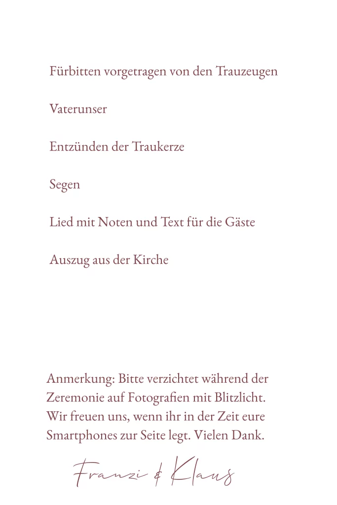 Klappkarte als Programmheft für die Kirche in rosa mit Line Art Blumen in weiß.