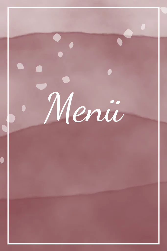 Menükarte im Klappkartenformat in rot mit Roségoldveredelung und Aquarellverlauf.