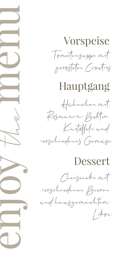 Schlichte elegante Menükarte als Wendekarte in beige und weiß