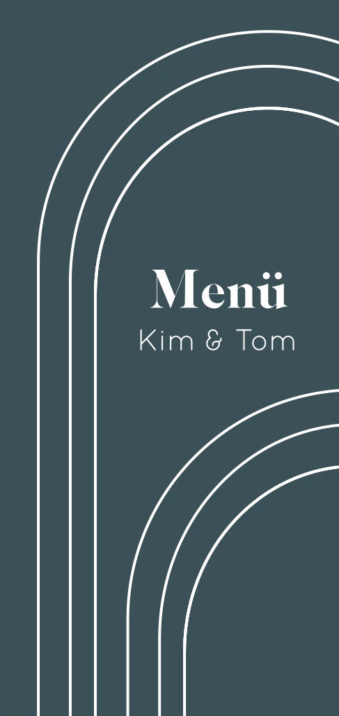 Moderne Hochzeitsmenükarte in blau mit schwarzer Folie in Bogenform