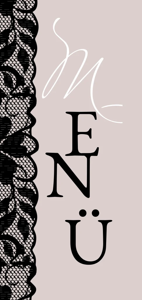 Romantische Menükarte mit verführerischer schwarzer Spitze