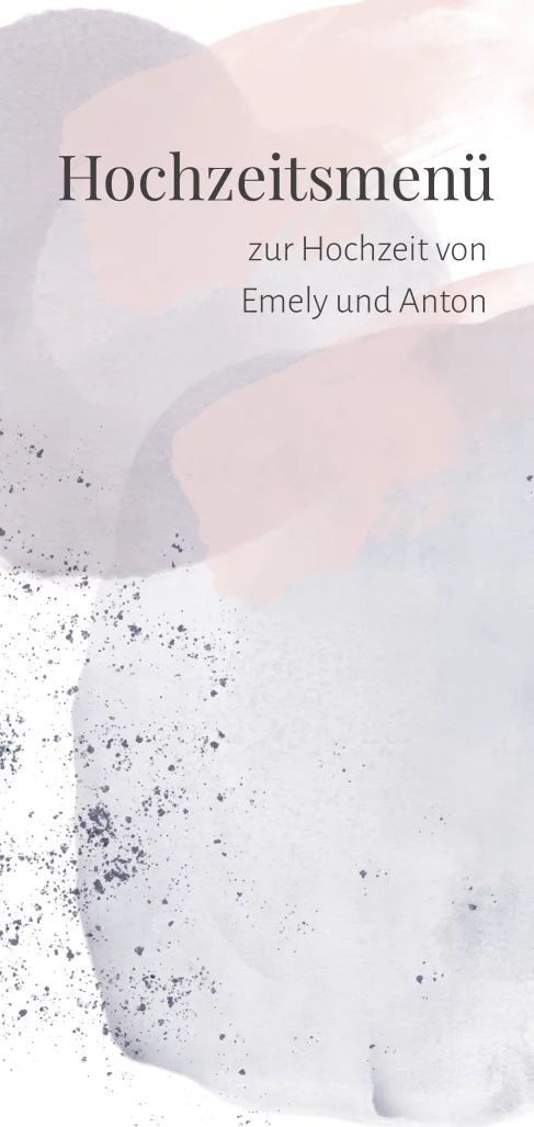 Menükarte zur Hochzeit mit Aquarell-Hintergrund in lila und rosa