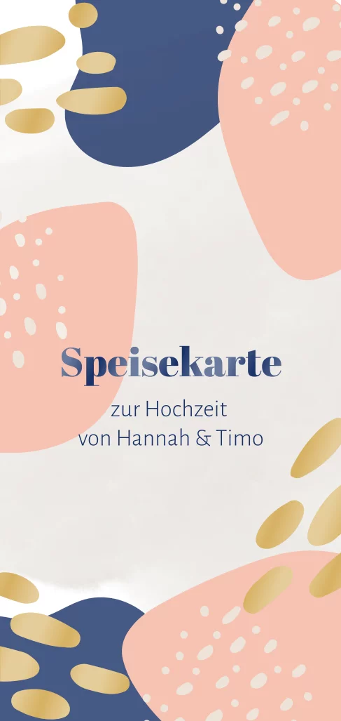 Ausgefallenes Hochzeitsmenü mit bunten, modernen Formen in Hochglanz