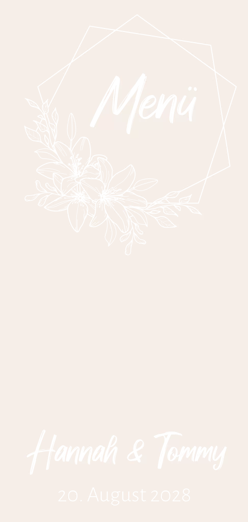Menükarte zur Hochzeit in beige mit geometrischen Rahmen und Blumen