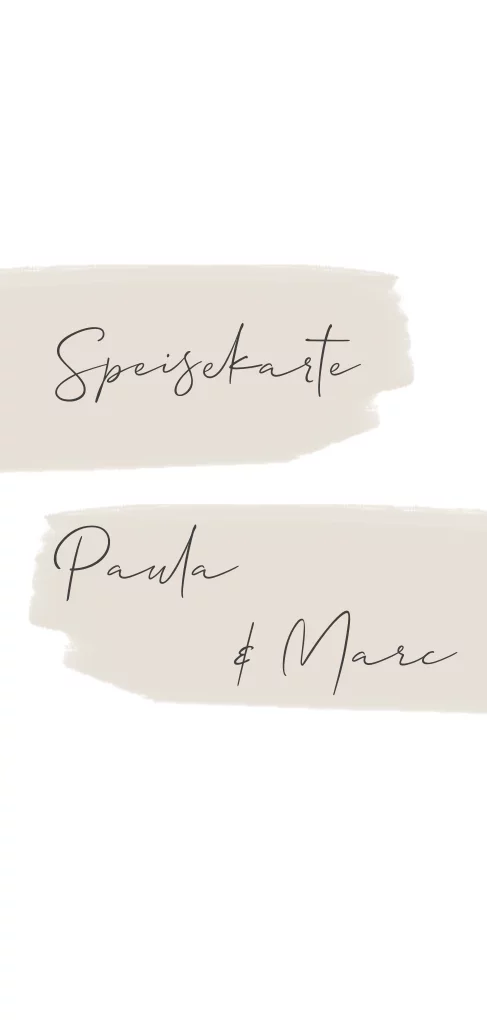 Modernes Hochzeitsmenü mit Pinselstrich in beige und Sprenkel in gold