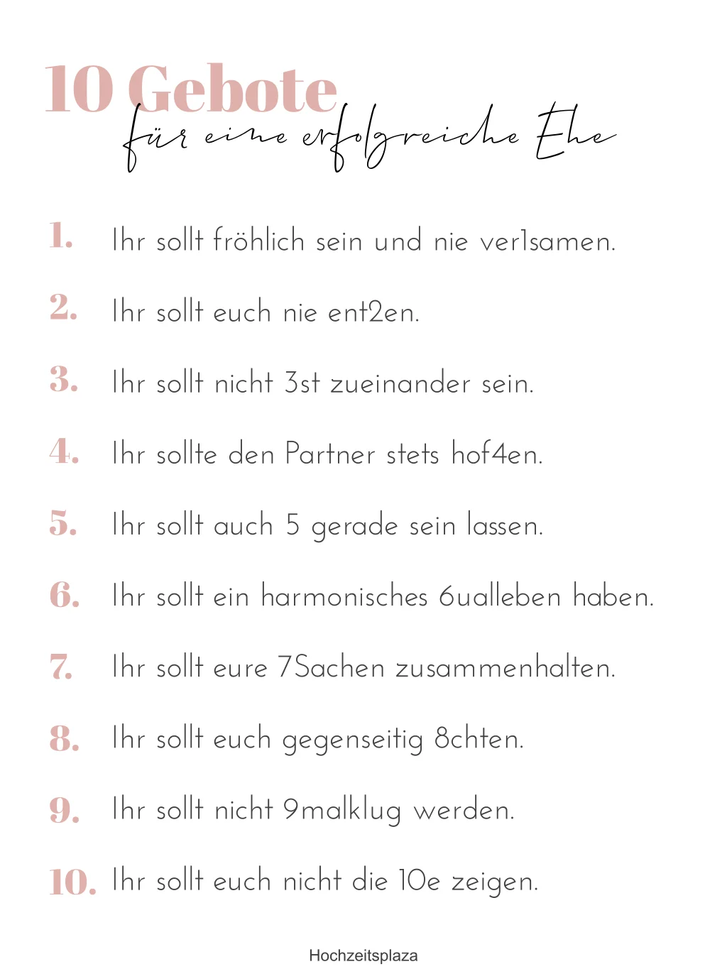 Weißes Poster "10 Gebote" als Hochzeitsgeschenk mit Details in altrosa. Ein klassisches Design über das sich jedes Hochzeitspaar freut.