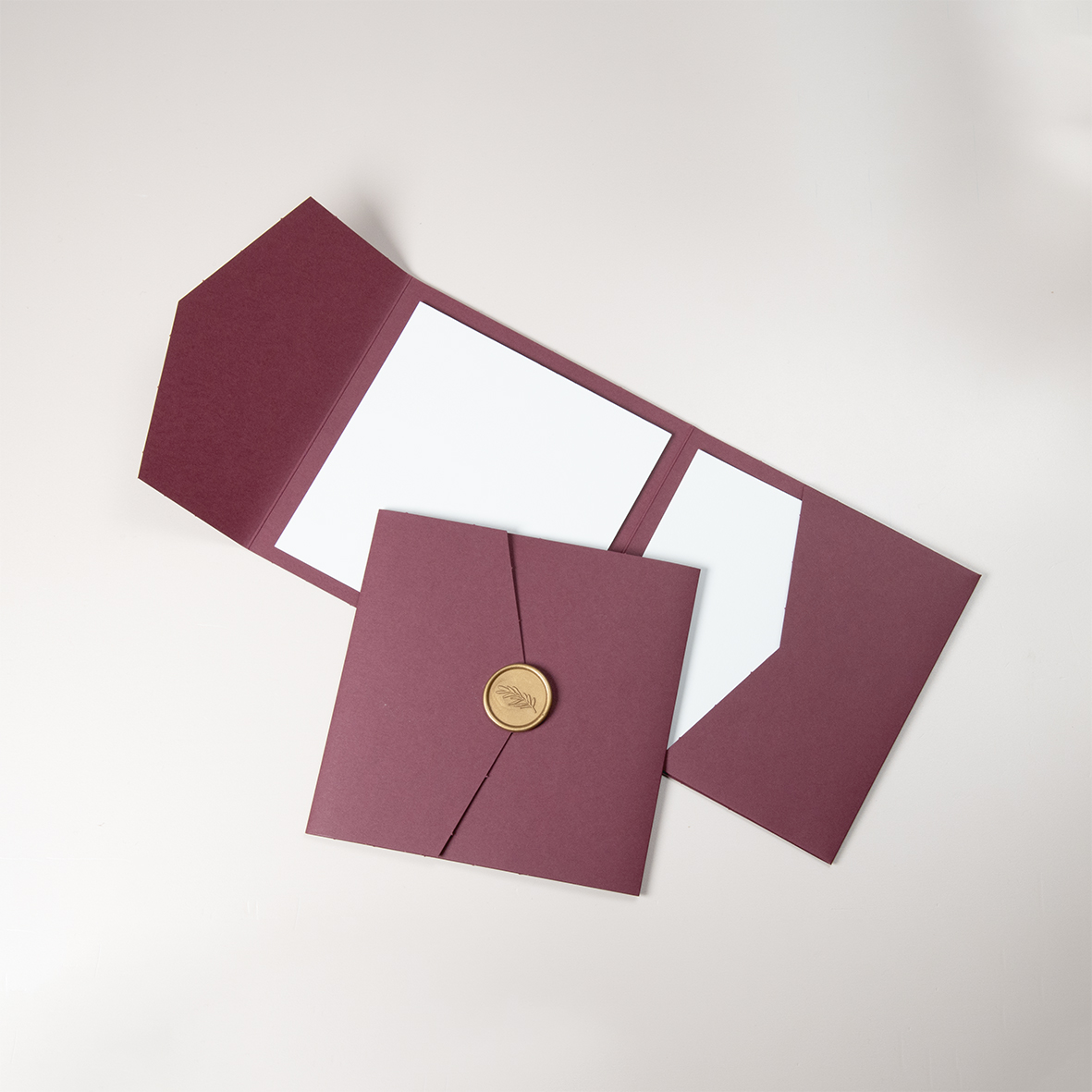 Berry Red pocketfold voor vierkante kaarten van 13 x 13 cm. Formaat pocketfold: 14,5 x 14,5 cm. Kies voor envelopmaat 16 x 16 cm.