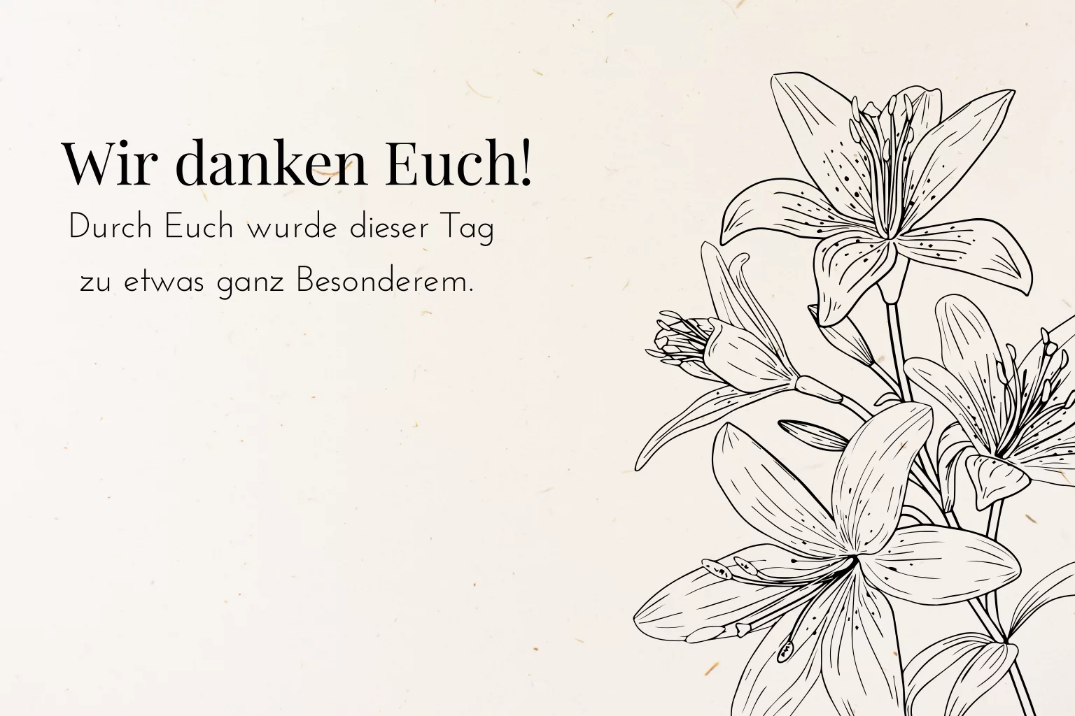 Dankeskarte zur Hochzeit aus Recyclingpapier mit Line Art Lilie