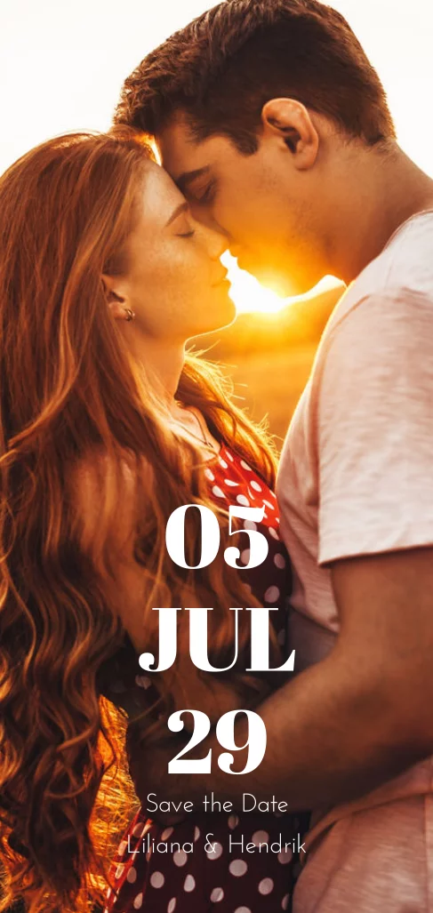Save the Date Fotokarte im Panoramahochformat mit Eurem Foto als Highlight. Das Hochzeitsdatum kann entsprechend der Fotofarben angepasst werden.