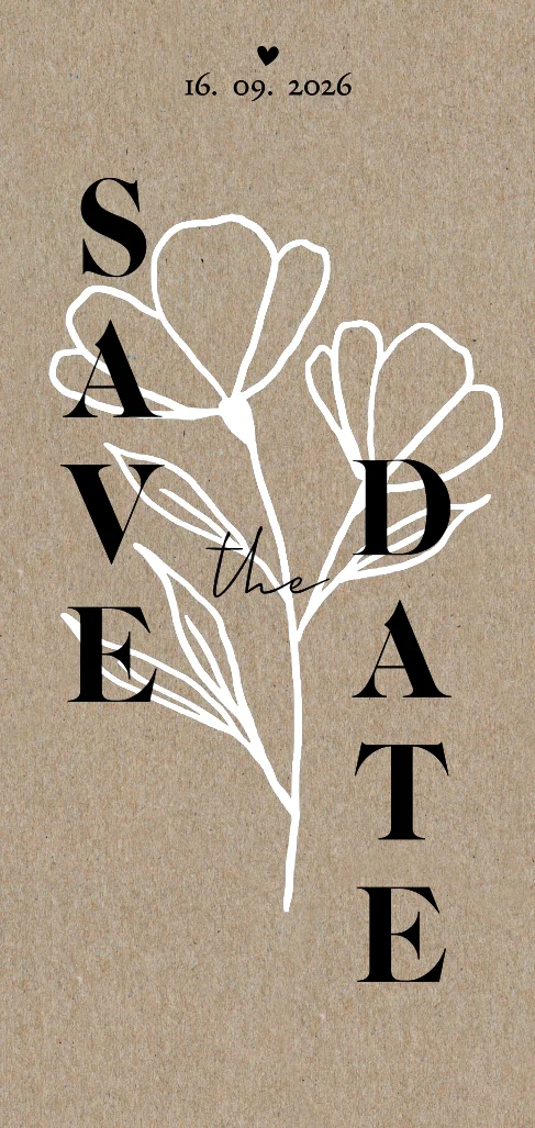 Save the Date Karte im Skandi Stil mit weißer Line Art Blume
