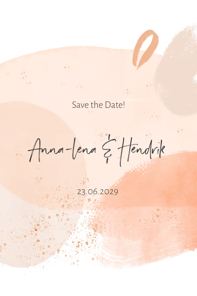 Save the Date mit Aquarellhintergrund in Orange Tönen. Die weiße Karte im Hochformat erscheint im modernen Design.