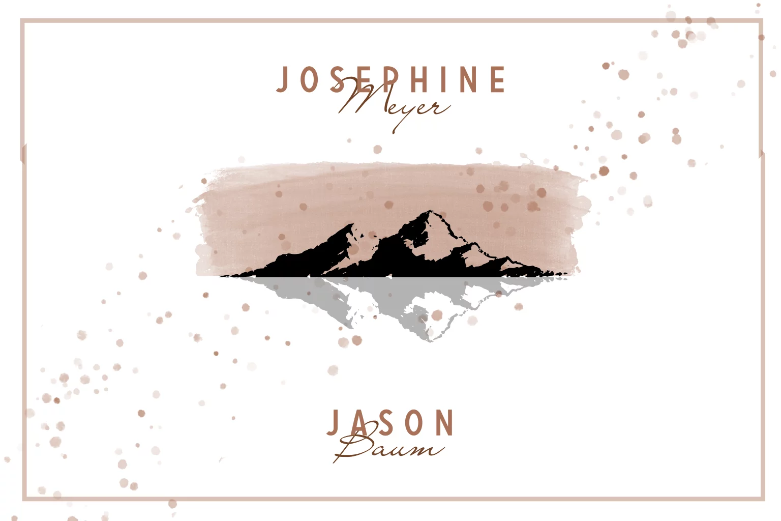 Stimmungsvolle Save the Date Karte mit einem gespiegelten Bergmotiv und Sprenkel