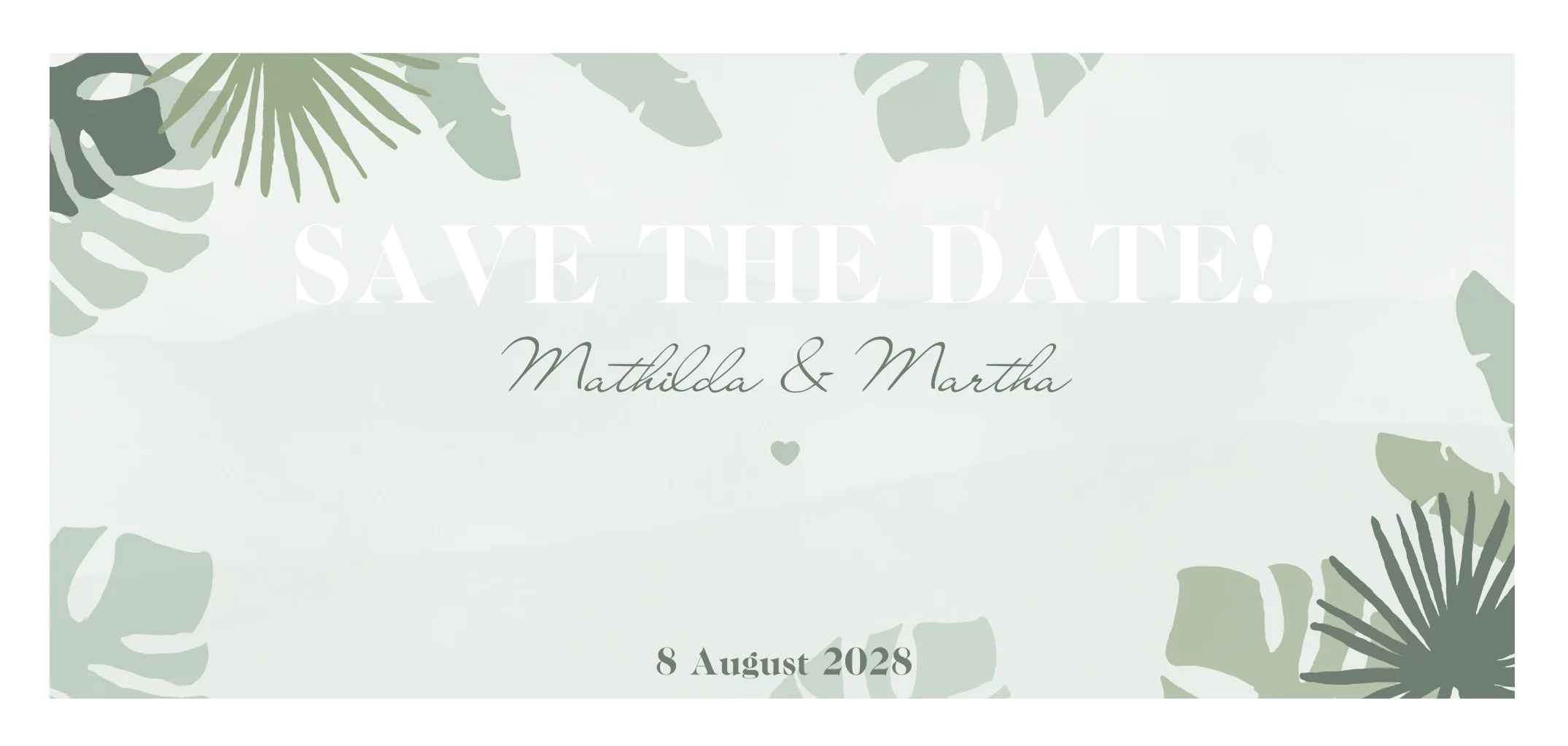 Save the Date Karte mit Palmenblättern in grün und Folierung