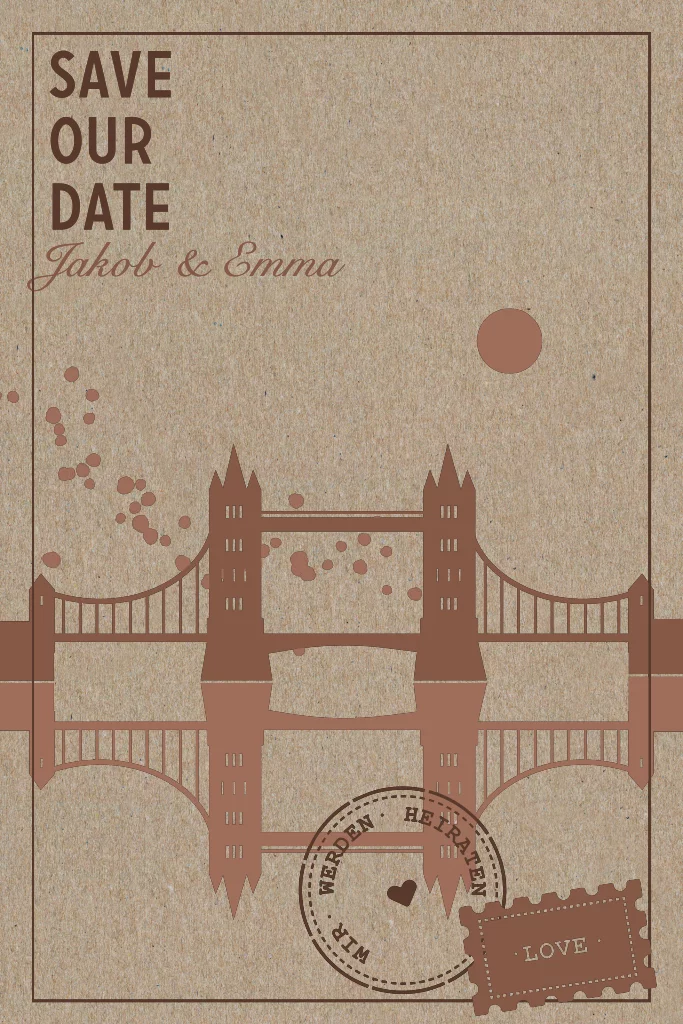 Save the Date Karte aus Kraftpapier mit London Tower Bridge Motiv